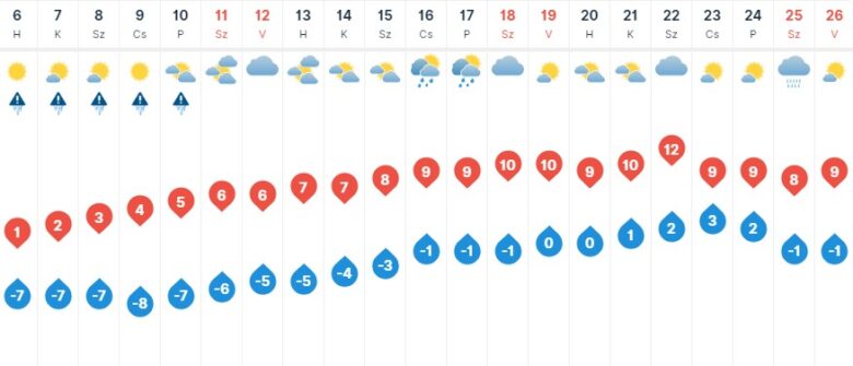 Fagyos reggel, -7 fokkal, majd napközben 1 fok és napsütés vár ránk hétfőn, Szegeden