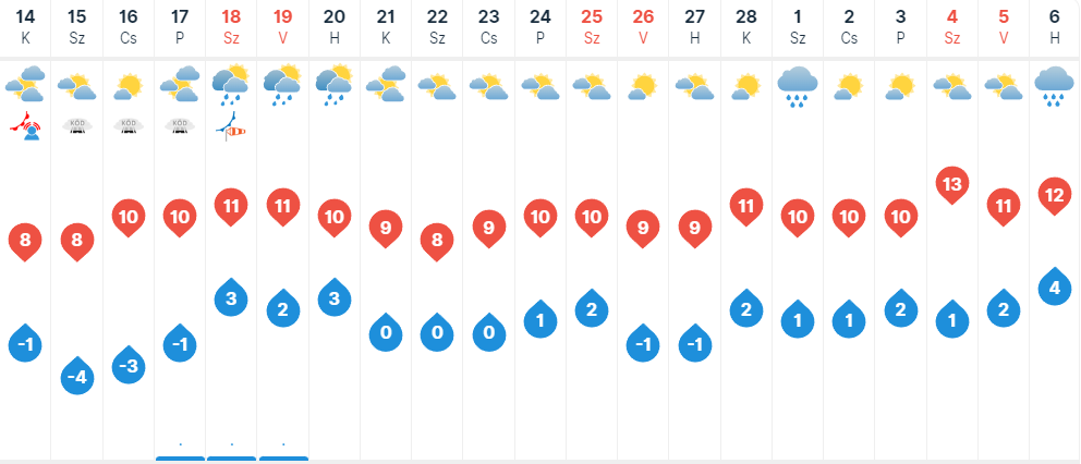 Szerda és csütörtök reggelre ismét többfelé képződhet pára és köd, amely helyenként tartósabban megmaradhat. Számottevő csapadék sehol sem várható, legfeljebb reggelente néhol kisebb ködszitálás fordulhat elő. Gyenge, mérsékelt marad a légmozgás. Szerdán 5 és 10, csütörtökön 6 és 11 fok közé melegedhet kora délutánra a levegő.