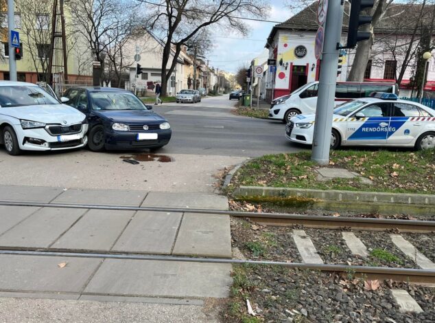 Két autó ütközött a József Attila sugárút és a Kecskeméti utca kereszteződésénél