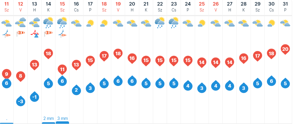 Szombatra egy markáns hidegfront hoz viharos északnyugati szelet és több fokos lehűlést Szegedre. A maximumok mindössze 6 és 11 fok között alakulnak. A reggeli órákban gyakran lesz felhős az ég és kisebb eső is kialakulhat, majd délutánra kisüthet a nap, viszont az erős szél egész szombaton velünk marad.