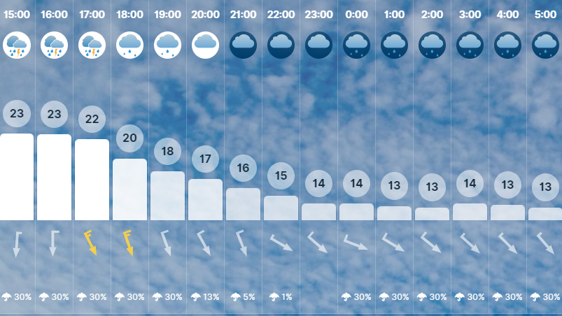 Időjárás fronton az előrejelzések azt mutatják, hogy a délután folyamán egy-egy zivatar lecsaphat Szegedre, viszont titkon abban reménykedünk, hogy ez csak elővigyázatosság, és valójában kitart még egy kicsit a napsütés városunkban. Az Időkép szerint ha mégis beteljesülne a jóslat, akkor felhőszakadás, jégeső és viharos szél is lehet. Fázni viszont így sem fogunk: egész délután 23 fokban borozhatunk a Széchenyi téren.