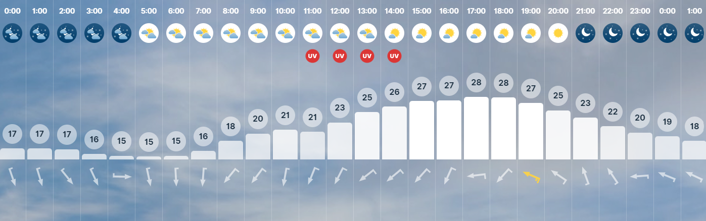 Szerdán az ország északi felén számíthatunk több napsütésre, hazánk déli-délkeleti részén, vagyis Szeged környékén viszont erőteljesebb lehet a gomolyfelhők képződése. Itt helyenként átmeneti záporok, zivatarok is kialakulhatnak. Élénk, néhol erős lökések kísérhetik a jellemzően északkeleti irányú szelet. Délutánra 25 és 30 fok közé melegedhet a levegő.