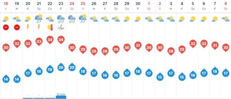 Az Időkép előrejelzése szerint gyenge szellő fújdogál majd napközben, így tökéletes lesz az idő, hogy a hasunkat süttessük a Lapos Beach-en. A reggeli órákban 14 fokot mérhetünk, napközben pedig eléri majd a 30 fokot a hőmérséklet Szegeden.