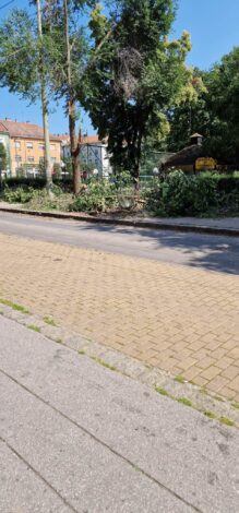 A pénteki vihar margójára: még mindig ott árválkodnak a földre zuhant faágak a Bartók téren, teljesen eltorlaszolja a járdát az egyik