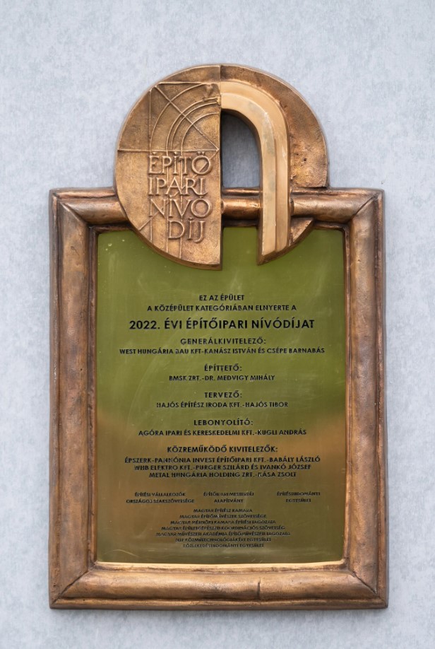 Mielőtt a táblát felavatták volna, a beszédek befejezéseként Tolnay Tibor, a nívódíjat megítélő Építőipari Mesterdíj Alapítvány Bíráló Bizottságának elnöke tartott beszédet. Ebben rámutatott: mind az építészeti tervezés minősége, mind a kivitelezés műszaki színvonala hozzájárult a díj megítéléséhez.
