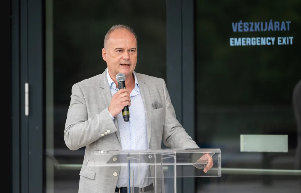 Beszédjében végig követte a Design & Build konstrukcióban elkészült komplexum kivitelezésének állomásait: megemlítette a 2019. november 29-én ünnepélyes keretek közti alapkőletételt, az előkészületek utáni, a következő év januárjában elrajtolt építkezés kezdetét, majd az első acél főtartó ezután egy évvel történt beemelését, valamint a 2021 decemberi teltházas BL mérkőzéssel egybekötött ünnepélyes átadás dátumát is.