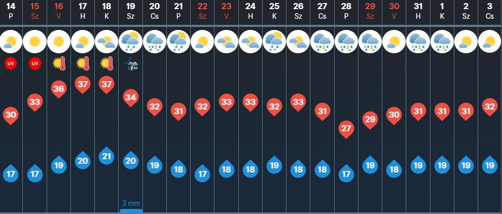 Péntek hajnalban, kora reggel még előfordulhat egy-egy zivatar, napközben azonban már csak záporok lehetnek. Sok lesz a napsütés, a hőmérséklet viszont néhány fokot visszaesik. Még így sem fogunk fázni: a mérsékelt szélben 28-33 fok közötti csúcshőmérsékletre van kilátás Szegeden.