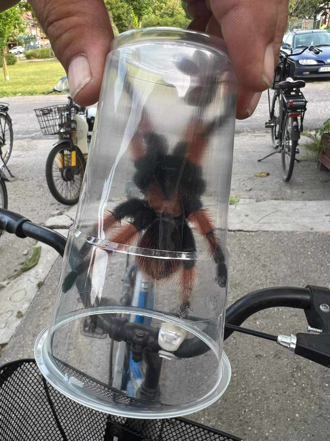 Mexikói vöröstérdű tarantulát (brachypelma hamorii) találtak szombat délután Algyőn, a Bartók Béla utcában, a nyolclábú kis(?)krapeknak most épp az egyik Facebook csoportban keresik a gazdáját. Egy Tímea nevű felhasználó két olyan fotót töltött fel, amelyeken az látszik, hogy a nagyjából 10-15 centis pók egy fél literes söröspohárban, egy kerékpár csomagtartójában várja sorsát, mint írta, a Bartók Béla utca 74-ben vehető át.
