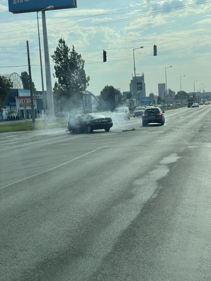 Karambol a Fonógyári út és a Dorozsmai út kereszteződésénél, az egyik kocsi füstöl