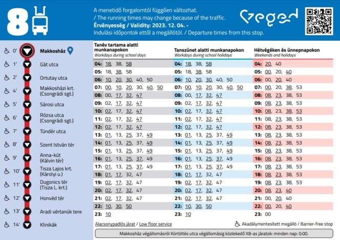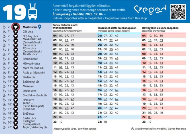 A közzétett információk alapján az alábbi menetrendek lépnek életbe:
