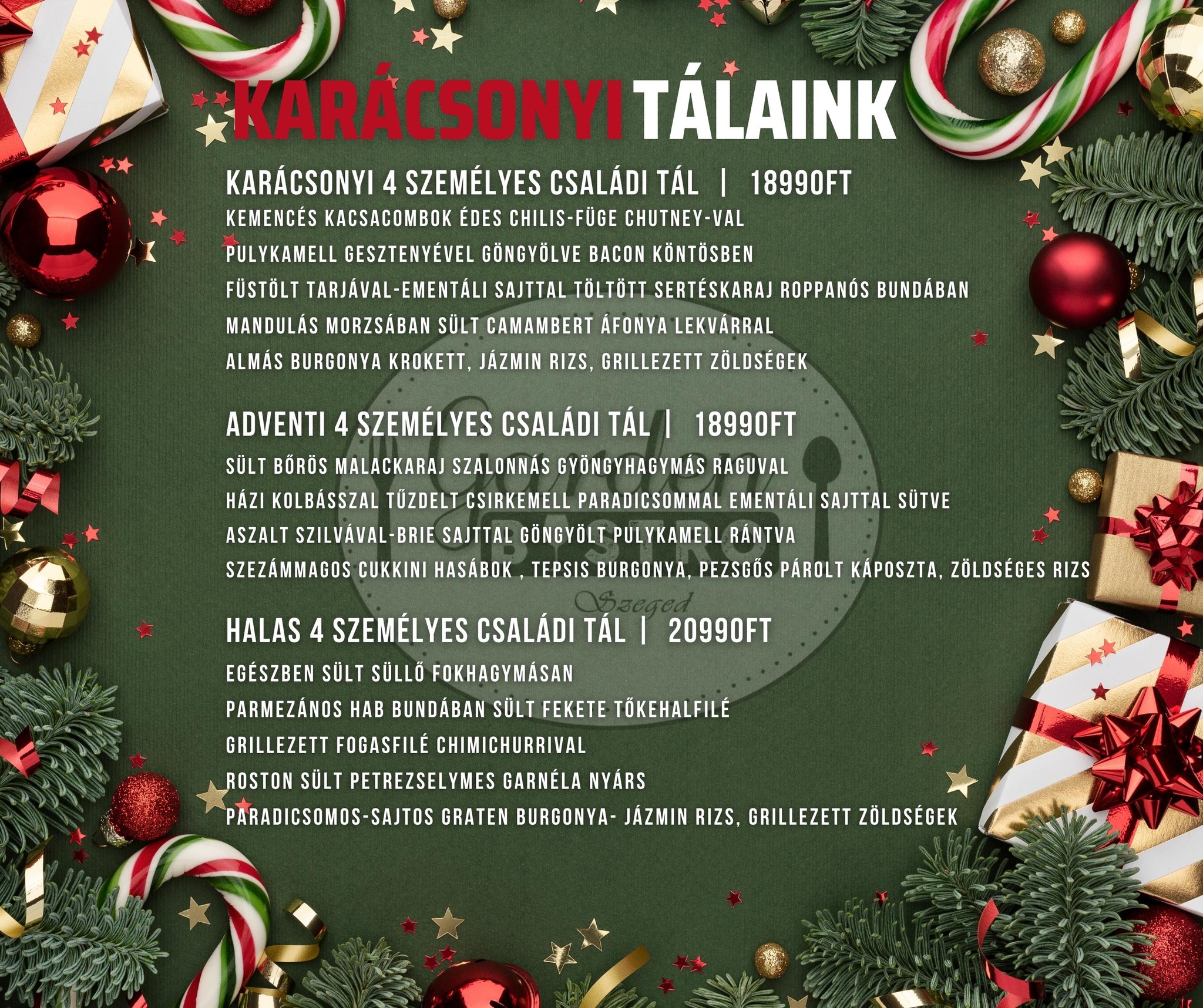 Nos, ezt bizony nem kell magyarázni. Ami autóban a Maserati, az sültestálban a Garden. A finomságokat a 06 70 427 3366 számon tudod megrendelni, az előrendeléseket december 21., 15:00 óráig fogadják. A tálakat december 24.-én 11:00-13:30 között lehet átvenni, az adagok gigantikusak, az árak korrektek, a tételek pedig magukért beszélnek:
