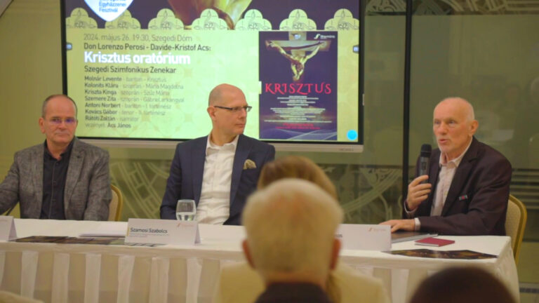 Május 26-án a Szegedi Dómba érkezik a KRISZTUS oratórium ősbemutatója, mely a Filharmónia Magyarország szervezésében zajló egyhetes Con Spirito Egyházzenei Fesztivál 2024 záróelőadása is egyben. A világpremiernek számító műről pénteken Ács János, nemzetközi hírű karmester és zongoraművész, Szamosi Szabolcs, a Filharmónia Magyarország igazgatója, Gyüdi Sándor a Szegedi Szimfonikus Zenekar igazgatója, valamint Molnár Levente énekművész, akit … Bővebben: Világpremier Szegeden: a Szegedi Dómba érkezik a Krisztus oratórium ősbemutatója – exkluzív interjú Ács János, nemzetközi hírű karmesterrel