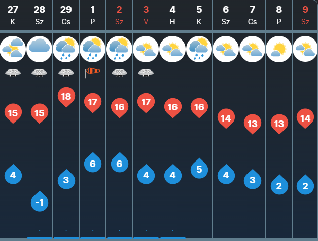 Kedden már több felhő lesz az égen Szeged felett. Esőre, záporokra az előrejelzések szerint nem kell számítanunk, a középső tájakon viszont néhol akár az ég is megdörrenhet. A délkeleti szelet többfelé kísérhetik élénk lökések. A minimumok 2 és 9 fok között alakulnak, délutánra 14 és 21 fok közé melegszik a levegő városunkban.