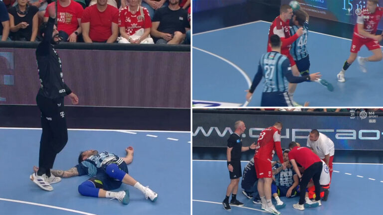 Ijesztő jelenettel kezdődött a férfi kézilabda-bajnokság döntője, melynek első mérkőzésén péntek este a kupagyőztes Veszprém fogadta a Szegedet, írta meg az M4 Sport. A 7. percben a vendégek támadtak, amikor Ligetvári Patrik és Dean Bombac, az OTP Bank – Pick Szeged játékosa ütközött keményen, utóbbi pedig a földre került és hosszú másodpercekig nem mozdult. AGYRÁZKÓDÁS-GYANÚS SÉRÜLÉST SZENVEDETT DEAN BOMBAC Miközben … Bővebben: A mentősök kísérték ki a pályáról a Szeged klasszisát, ijesztő pillanatok a férfi kézilabda-bajnokság döntőjében