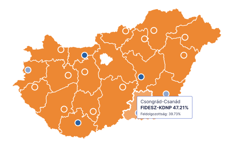 Számos nagyvárosban már egyértelmű a 2024-es önkormányzati választás végeredménye, Szegeden ismét győzni tudott Botka László, a két szomszédban pedig Márki-Zay Péter (Hódmezővásárhely, 55.1%) és Farkas Éva Erzsébet (Makó, 54.56%), Budapesten és Győrben viszont óriási csata dúl a jelöltek között. Bár vannak nagyvárosok, ahol ellenzéki győzelem született (vagy éppen pont most születik), a vármegyei listákon masszív Fidesz-győzelem várható, ez utóbbit jól szemlélteti az a narancsba borult térkép, amely szinte az összes kormányzati befolyás alatt lévő hírportálra kikerült ma este.