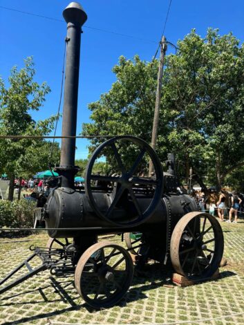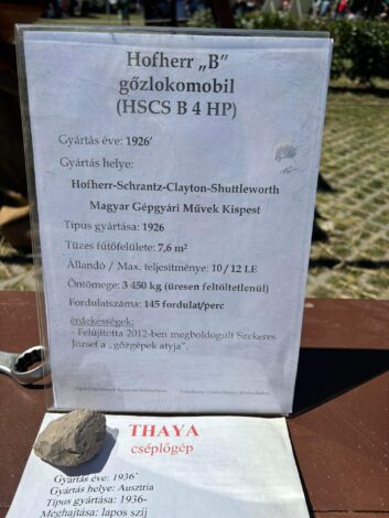 Mint az egyesület elnöke beavatott bennünket, a lokomobil gőzgépet valamikor ökrökkel és lovakkal húzatták. A gép gőzt termel, mint egy mozdony, majd egy nagy féktárcsán keresztül hajtja meg a különböző eszközöket, mint például a szivattyúkat, és cséplőgépeket. Azt is megtudtuk, a bemutató azért is különleges, mert ez a mára már csupán hagyományőrzést szolgáló gép igazi ritkaságnak számít. Ilyen magyar gyártmányú gőzgép csak kettő van az országban, az egyik a keszthelyi múzeumban tekinthető meg, a másik Sándor tulajdonában van. Ezt láthatjuk fotókon a Tápéi Tarhonyafesztiválon.
