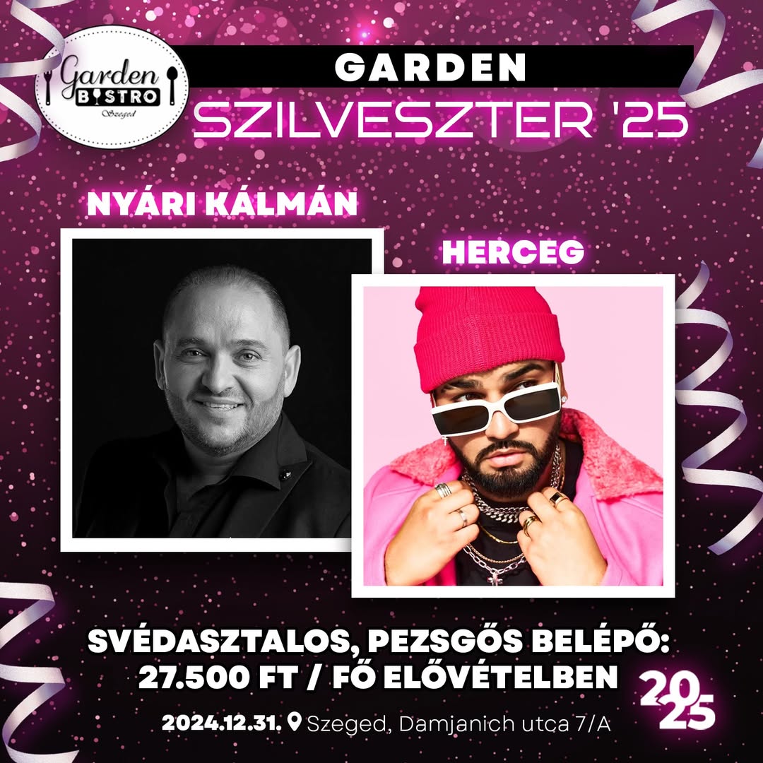 Megadja a módját a két év után visszatérő Garden Szilveszternek a Damjanich utcai étterem, ennek megfelelően rögtön két sztárfellépőt is magukhoz csábítottak az év utolsó napjára: