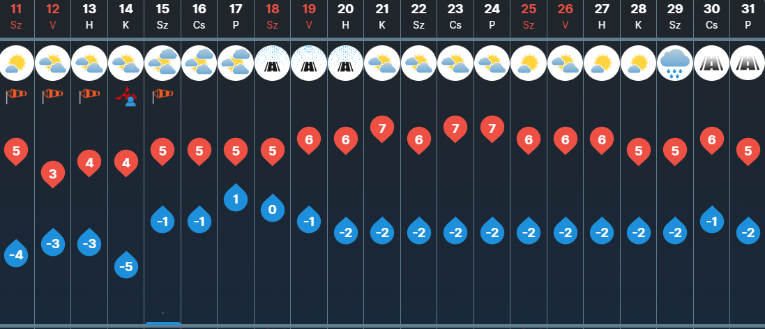Szombaton sok napsütésre számíthatunk Szegeden. Néhol futó hózápor még kialakulhat, de jelentős csapadék sehol sem várható. Sokfelé élénk, erős lesz a nyugati, északnyugati szél, és reggelre pára-, ködfoltok is képződhetnek. Hajnalban -3, kora délután 5 fokot mutathatnak a hőmérők városunkban.