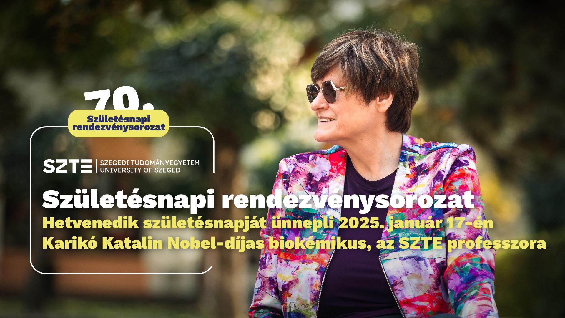 Hetvenedik születésnapját ünnepli 2025. január 17-én Karikó Katalin Nobel-díjas biokémikus, az SZTE professzora. Ebből az alkalomból Portréfotók az első magyar Nobel-díjas nőről címmel kamarakiállítást rendez az SZTE Nemzetközi és Közkapcsolati Igazgatósága.
