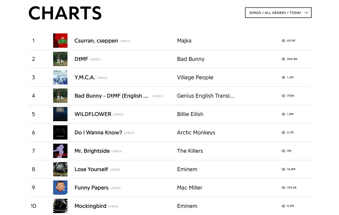 A dal elképesztő népszerűségét az is mutatja, hogy a dalszövegekre fókuszáló Genius.com oldal keresési toplistájában a Csurran, cseppen szerepel az első helyen, olyan előadókat maga mögé utasítva, mint Eminem vagy Bad Bunny.