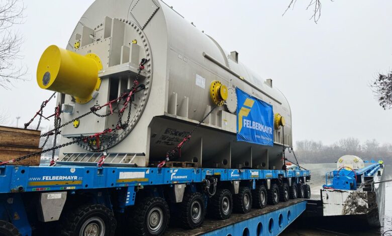 750 tonnás rakomány: a magyar közlekedéstörténet legnagyobb szállítmánya halad át a tápéi kompkikötőn