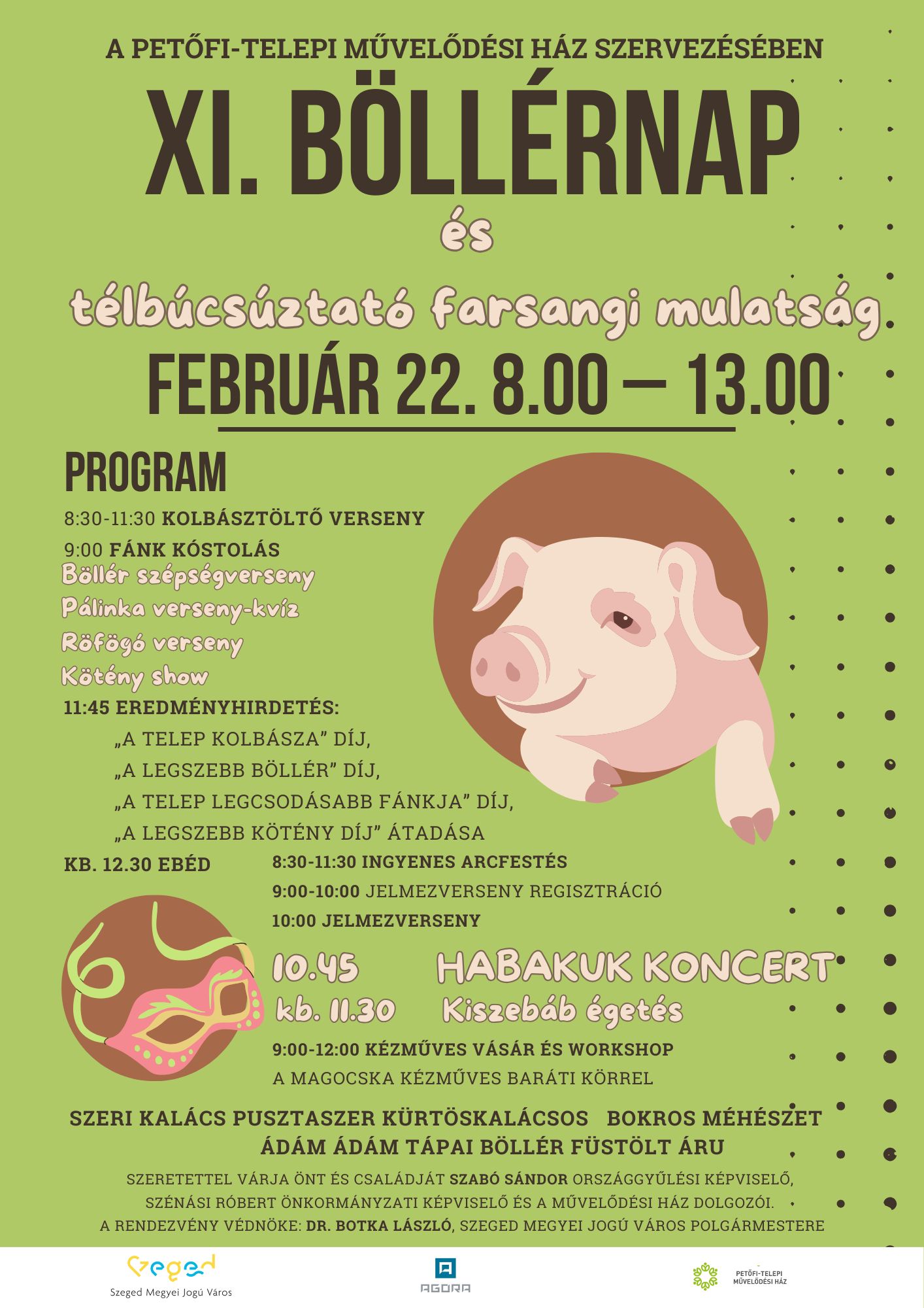 Szombaton szervezik meg a XI. Böllérnap és téltemető farsangi mulatságot Petőfitelepen, a Petőfi-telepi Művelődési Házban. Az eseményen lesz