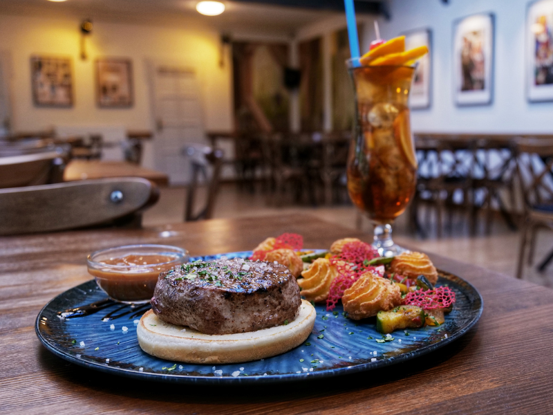 A kameránkkal és az ízlelőbimbóinkkal együtt merültünk el a Napfény Műterem világában. Két ikonikus gasztrokreációt teszteltünk: a világhírű Long Island Ice Tea koktélt és az Új-zélandi marha bélszínt. Az előbbi egy legendás, ütős amerikai ital, amit a vodka, fehér rum, tequila, gin, triple sec és a lime frissessége, na meg a kóla karakteres édessége tesz felejthetetlenné. Nem egy könnyed fröccs, az biztos – de aki szereti az erőteljes koktélokat, annak kihagyhatatlan!