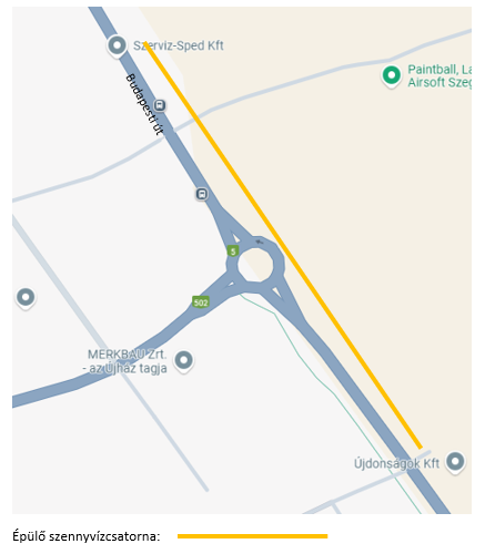 A Szegedi Vízmű Zrt. 2025. március 6-tól, várhatóan 2025. július közepéig szennyvízcsatorna-építési munkákat végeztet Szegeden, a Budapesti út (5-ös főút) mellett, a „zöldsávban”, az 502-es út leágazásánál lévő körforgalom előtt és után, körülbelül 300-300 méteren, összesen több, mint 600 méter hosszban – tájékoztatta szerkesztőségünket a szegedi vállalat.