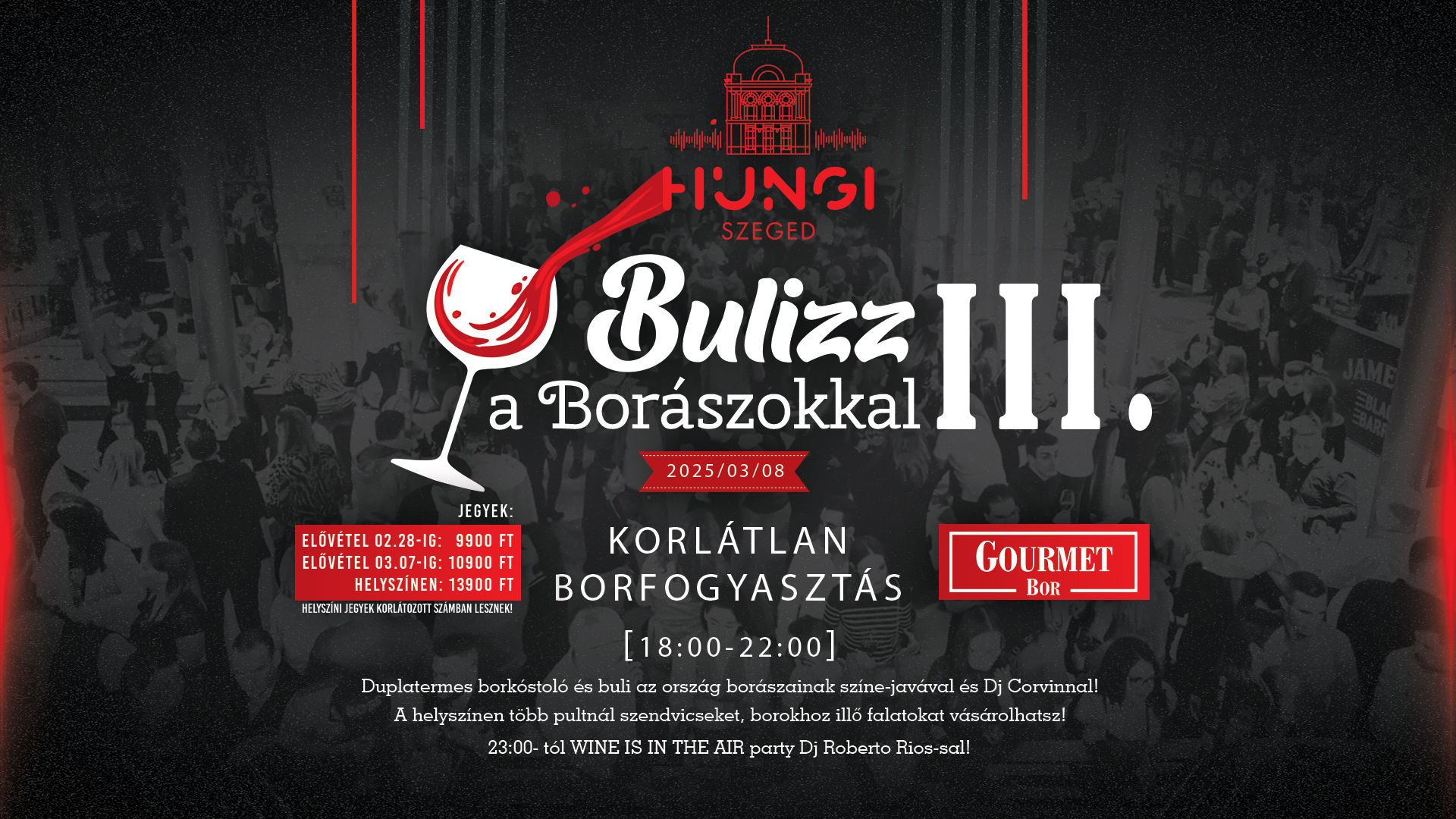 - március 8-án ismét a boroké lesz a főszerep a Hungi falai között, jön a “Bulizz a Borászokkal” harmadik etapja,