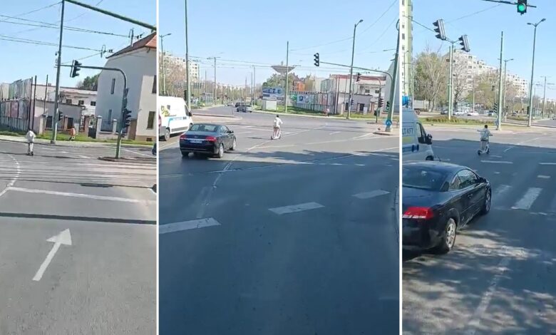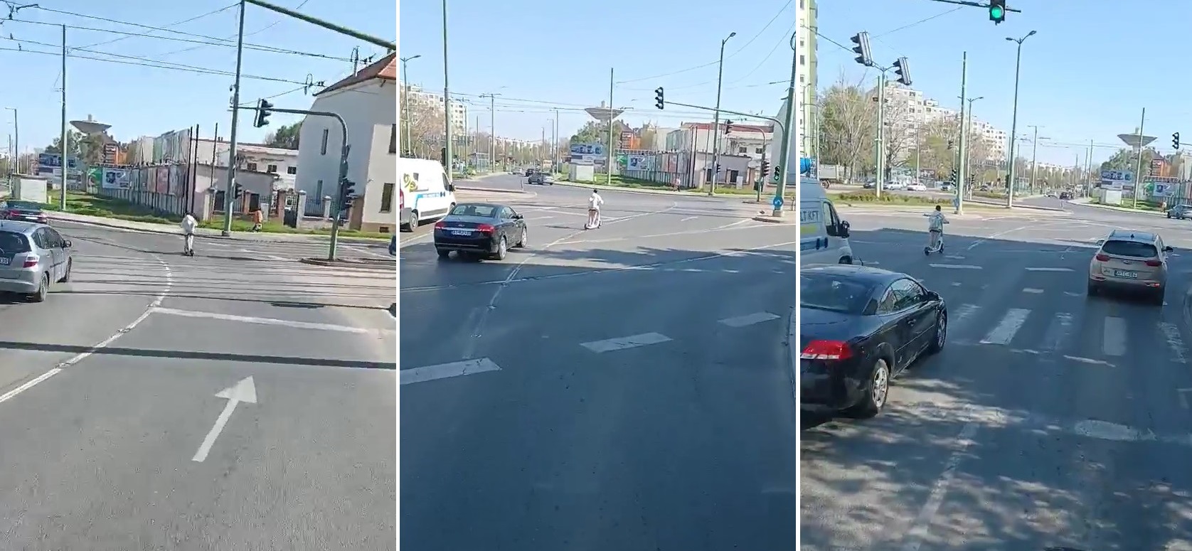 Elképesztő videót osztott meg szerkesztőségünkkel egy olvasónk, amin egy kislány látható, amint a Rókusi körúti nagy lámpás körforgalomnál várakozik. Nos, mint kiderült, nem a zebrán szeretett volna átkelni a rollerrel hanem egy az egyben áthajtott a többsávos körforgalmon a kocsik előtt.