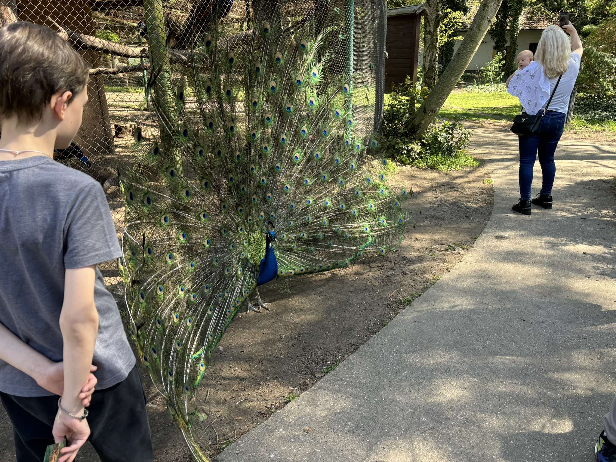 a létesítményben szabadon is meg lehet tekinteni egy-két állatot, ott jártunkkor ugyanis épp kiszökött az egyik páva.