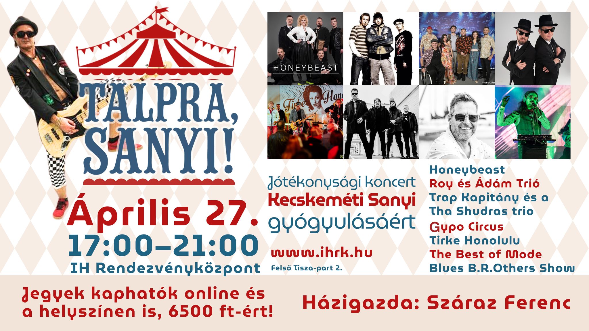 Mint megírtuk, a vasárnapi koncertek jegybevételét és a helyi adományokat Sanyi gyógykezelésére ajánlják fel! Az április 27-én vasárnap, 17 órától kezdődő jótékonysági eseményen fellépnek majd: