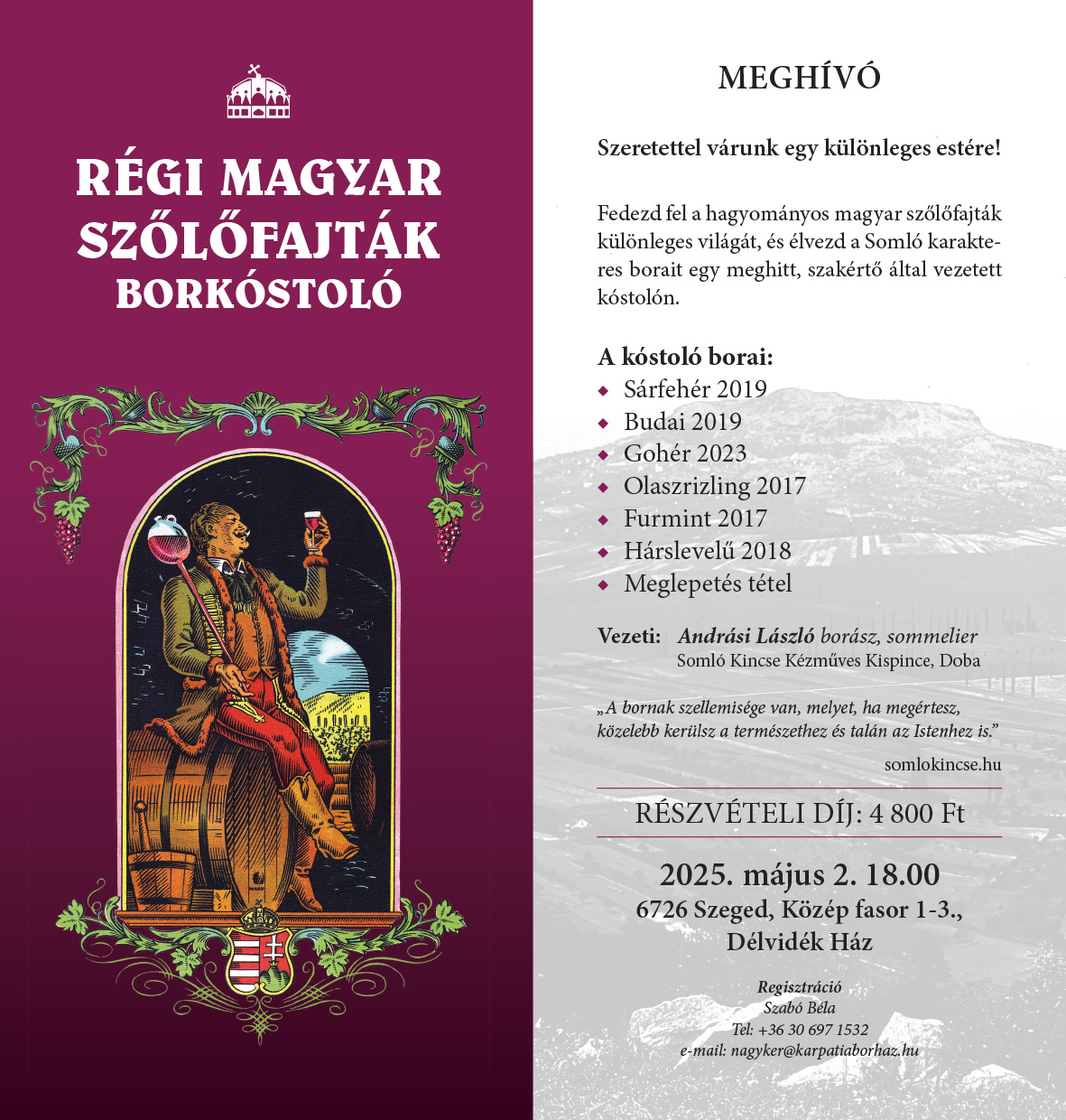 A májusi hosszú hétvége nem is indulhatna jobban, mint egy ízekkel, illatokkal és történetekkel teli estével a Délvidék Házban. A borkóstoló nemcsak a különleges tételek miatt lesz kihagyhatatlan, hanem azért is, mert egy családias, közvetlen hangulatban ismerheted meg a Somló titkait. Ha még nem jelentkeztél, érdemes gyorsan lépned, mert csak a leggyorsabbaknak marad hely!