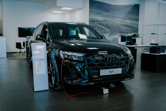 Elsőként a tisztán elektromos Audi e-tron-t lestük meg a Porsche Szegednél, amely első ránézésre olyannyira robosztus volt, hogy a Transformers című film jutott róla eszünkbe – persze jó értelemben. A tisztán elektromos modell lélegzetelállító front része mellé az Audi belső enteriőrje is teljes mértékben megújult, ennek hozadéka a vadonatúj műszerfalegység is, melynek köszönhetően már három kijelző is található a legfrissebb Audi modellekben, nem csak a szóban forgó e-tronban. Mindez azt eredményezi, hogy már az anyósülés előtt, az ott utazó utassal szemben is található egy kijelző, amin lehet filmet, vagy éppen videót nézni. Felmerülhet a kérdés, hogy ez nem vonhatja-e el a sofőr figyelmét, pánikra azonban semmi ok: mint ahogyan Nagy Lajos értékesítési vezető magyarázta, a kijelzők úgy lettek kialakítva, hogy a sofőr ne lássa az utas előtt lévő kijelzőt.