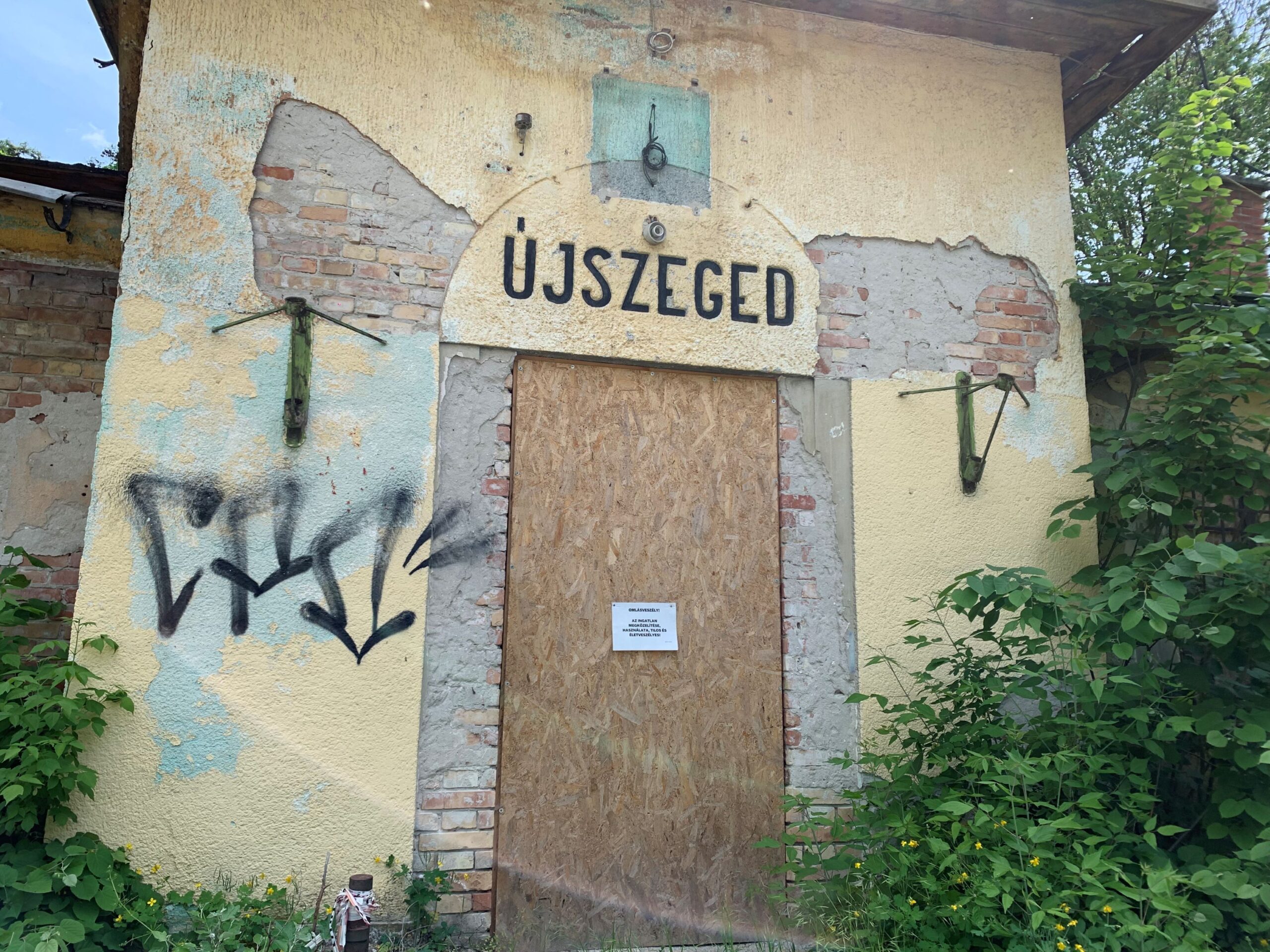 Az egykori Orient Express útvonalán fekvő Újszegedi Vasútállomás látványa igencsak elszomorító 2025-ben: tűzeset nyomai, bomladozó falak, életveszélyes omlásokra figyelmeztető táblák, az elhanyagoltság jelei fogadtak minket. Az ígéretek ellenére sem foglalkozott a MÁV a tragikus állapotbán lévő állomással, ami jelenleg így néz ki: