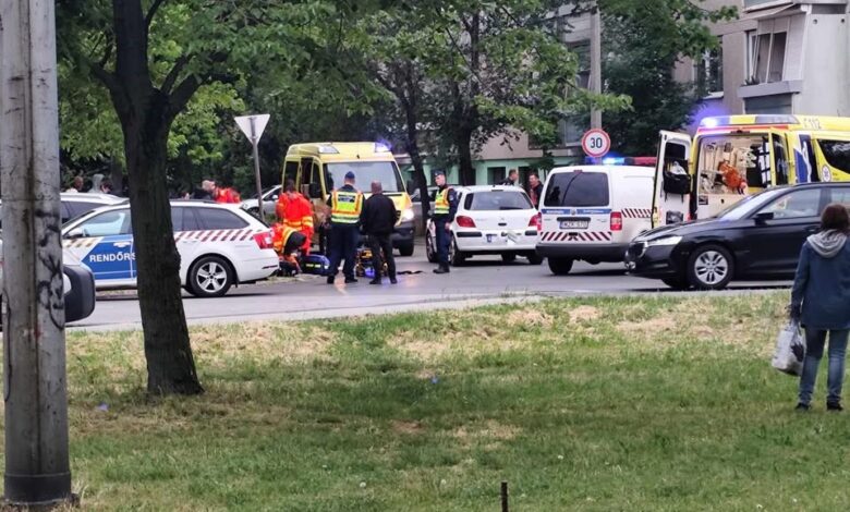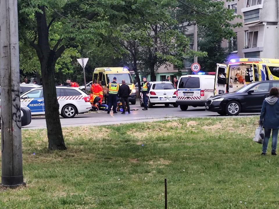 Babakocsis anyukát, és gyermekét sodorta el egy autós a Petresi és a Körtöltés utcák kereszteződésében, mentők és rendőrök a helyszínen