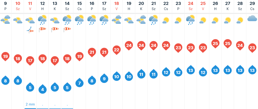 A több napos csapadékos idő után pénteken végre kisüt majd a nap Szegeden. A napsütést azonban gyakran zavarják majd gomolyfelhők, de csak néhol alakulhat ki jelentéktelen zápor. Hajnalra helyenként délen pára és köd képződhet. Kora reggel 8, délután pedig 19 fok körül alakul a hőmérséklet.