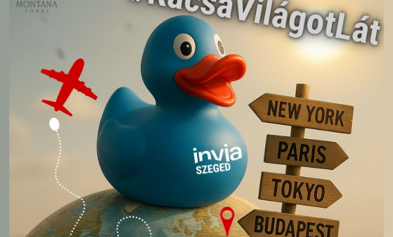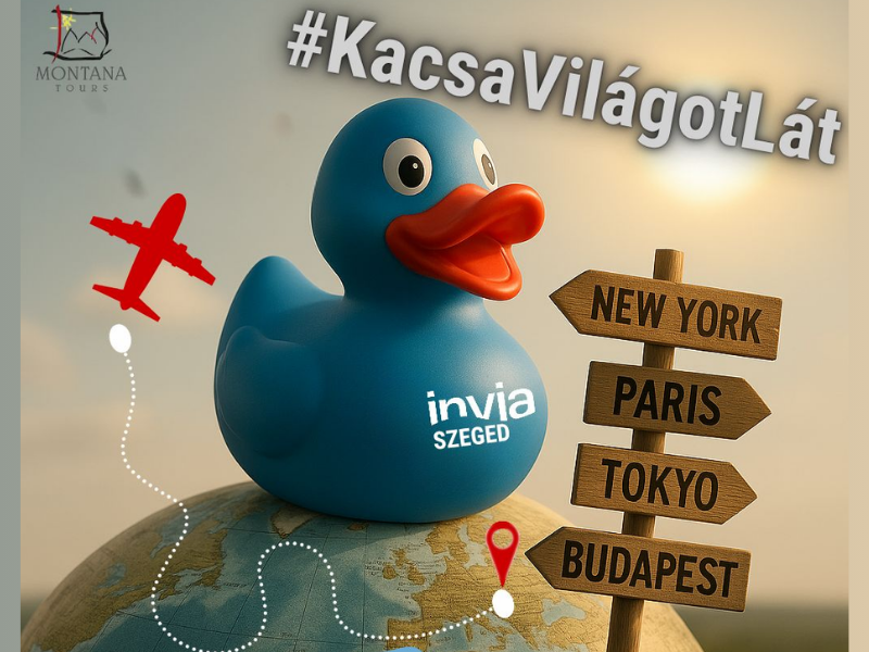 Tudtad, hogy egy apró, szegedi gumikacsa is képes bejárni a világot? Mostantól bárki részese lehet ennek a különleges, játékos kalandnak – hála a Montana Tours INVIA Szeged közös kezdeményezésének. Az INVIA Szeged utazó kacsája egy kedves, kék kis gumikacsa, amit mindenki megkap, aki a Montana Toursnál, Szeged egyik legismertebb és legsokszínűbb utazási irodájánál foglalja le álomnyaralását.