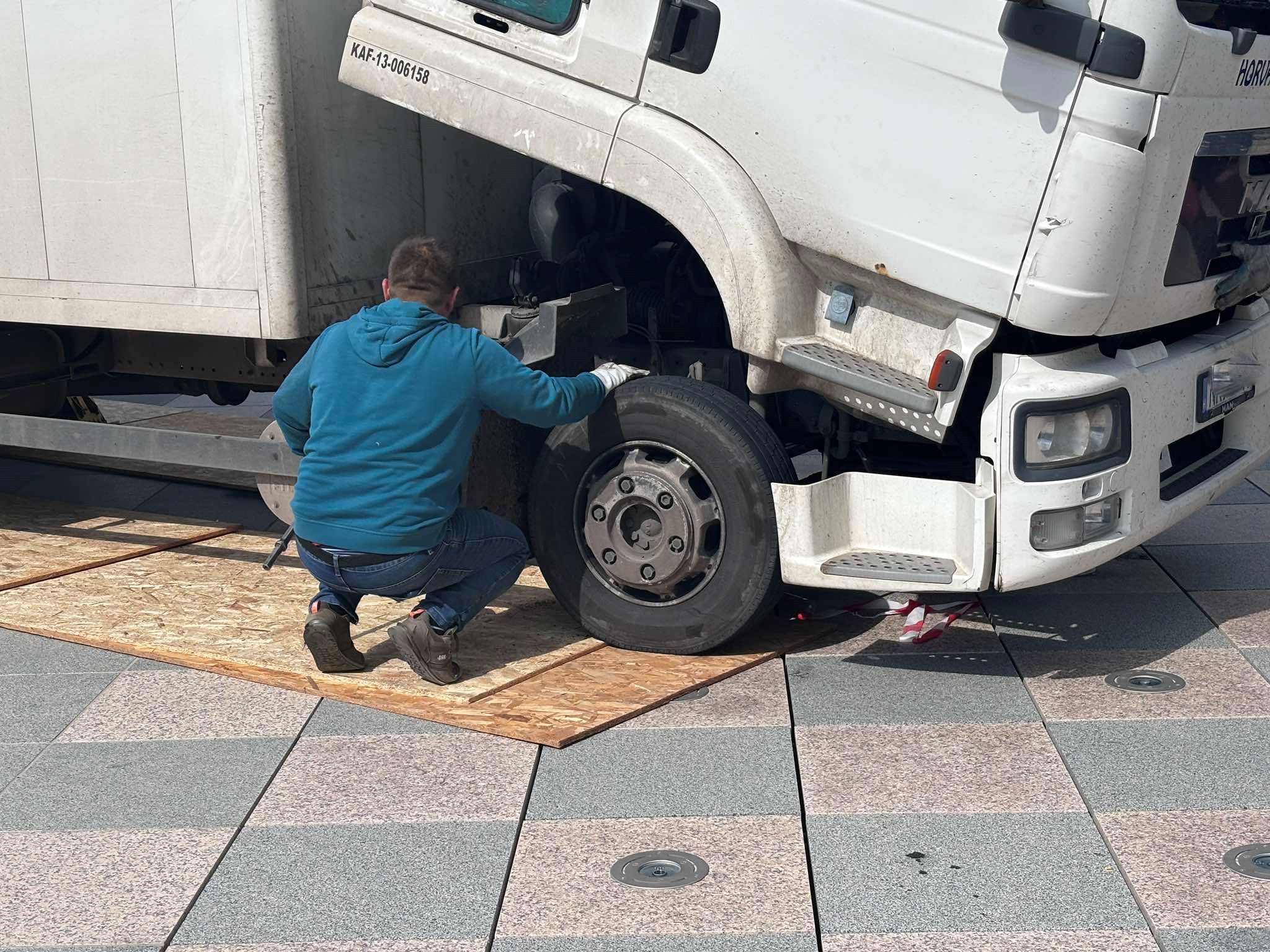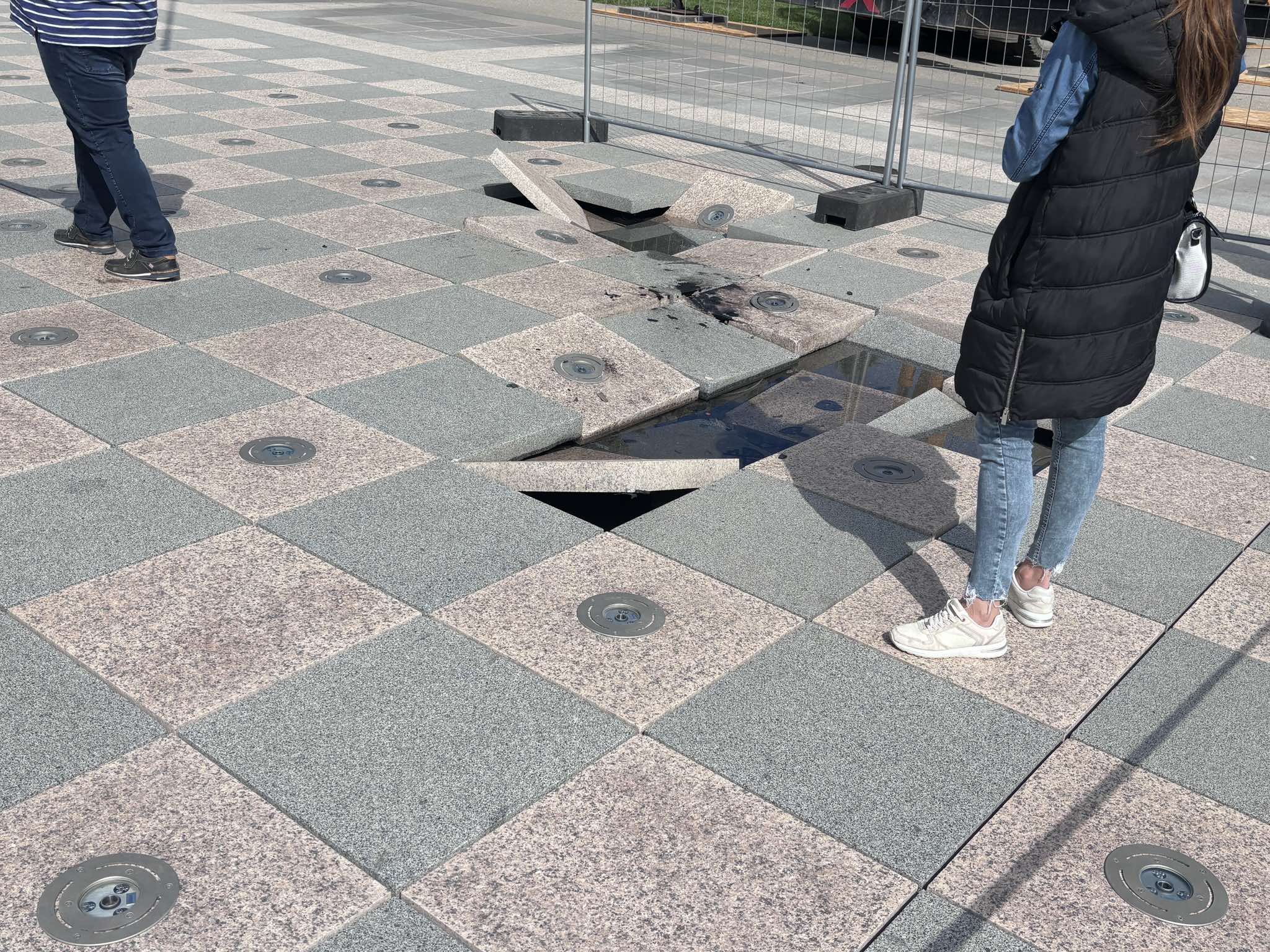 Mint megírtuk, egy teherautó szeretett volna megfordulni a Móra Ferenc Múzeum előtti szökőkúton, de nem jött össze, beszakadt alatta a díszlap. A szakemberek rögtön megjelentek a helyszínen és délutánra egy daru is megérkezett, 15 órára ki is emelték a több tonnás járművet a beszakadt részből, ami később elhagyhatta a helyszínt.