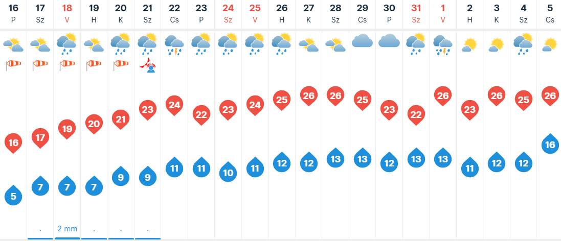 Pénteken napos-gomolyfelhős időben lesz részünk Szegeden, csapadékra azonban szerencsére nem kell számítanunk, így nyugodtan lehet Borfesztiválozni a Széchenyi téren. Sokfelé élénk, a helyenként erős lesz az északi, északnyugati szél. Hajnalban 5-7 fokra számíthatunk, napközben pedig 16 fok körül alakul a legmagasabb hőmérséklet.