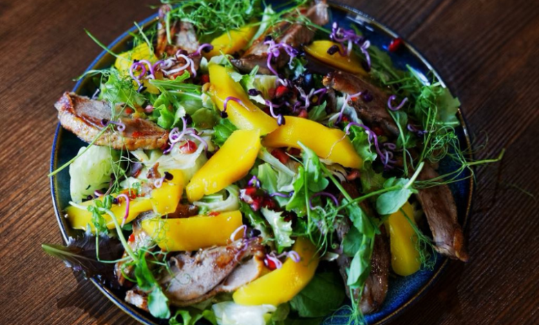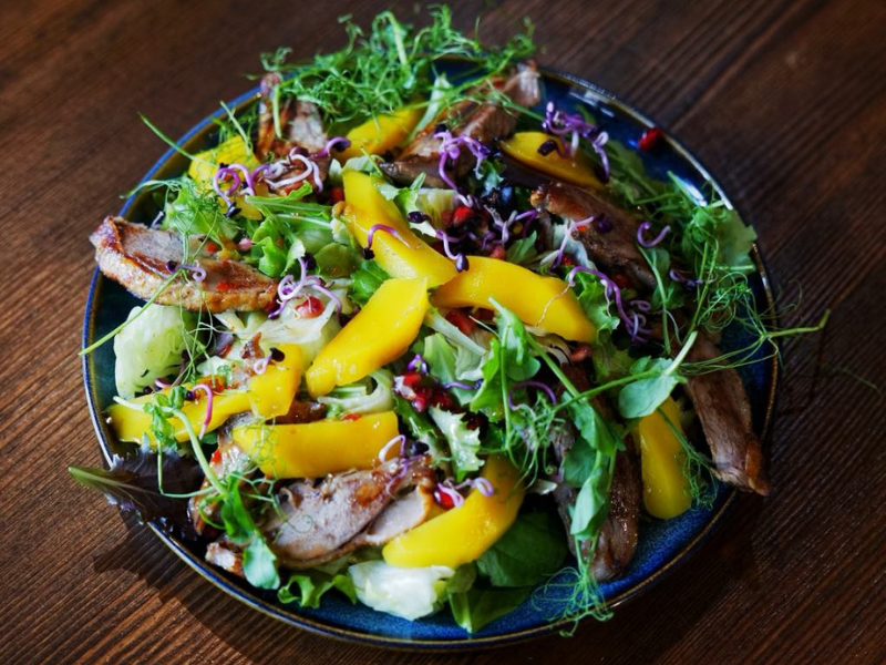 Ez az új saláta egyszerre frissít és elvarázsol – nemcsak a tányérra kerülő alapanyagok, hanem az étel mögött rejlő gondosság és kreativitás is érződik minden falatban. A séfek nem csupán ízekkel dolgoztak, hanem történetekkel is: a mangó édeskés vibrálása, a gránátalma roppanása és a kacsahús füstös melegsége úgy épül egymásra, mint egy jól komponált zenemű hangjai. Ez az a fajta étel, amire nemcsak emlékezni fogsz, hanem vissza is vágysz majd – újra és újra.