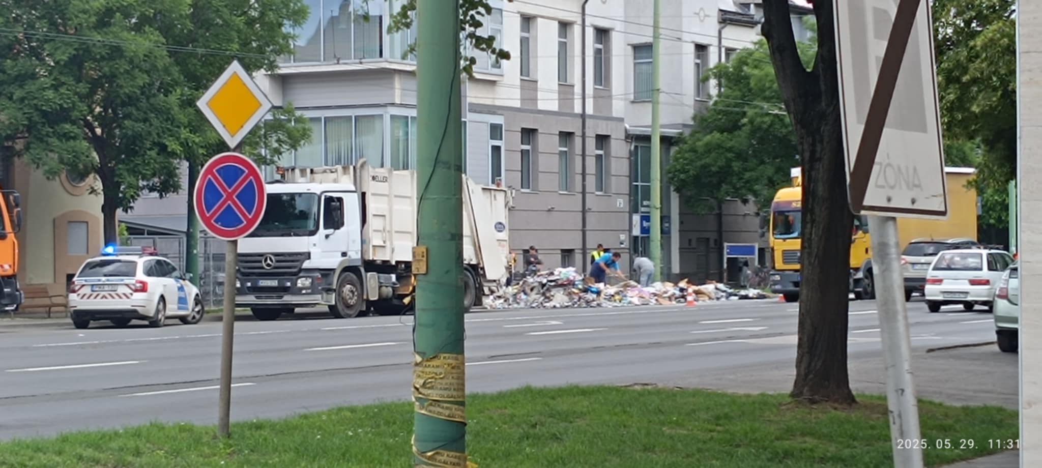 Ömlik a füst egy kukásautó hulladékgyűjtő tartályából a Római körúton (frissítve)