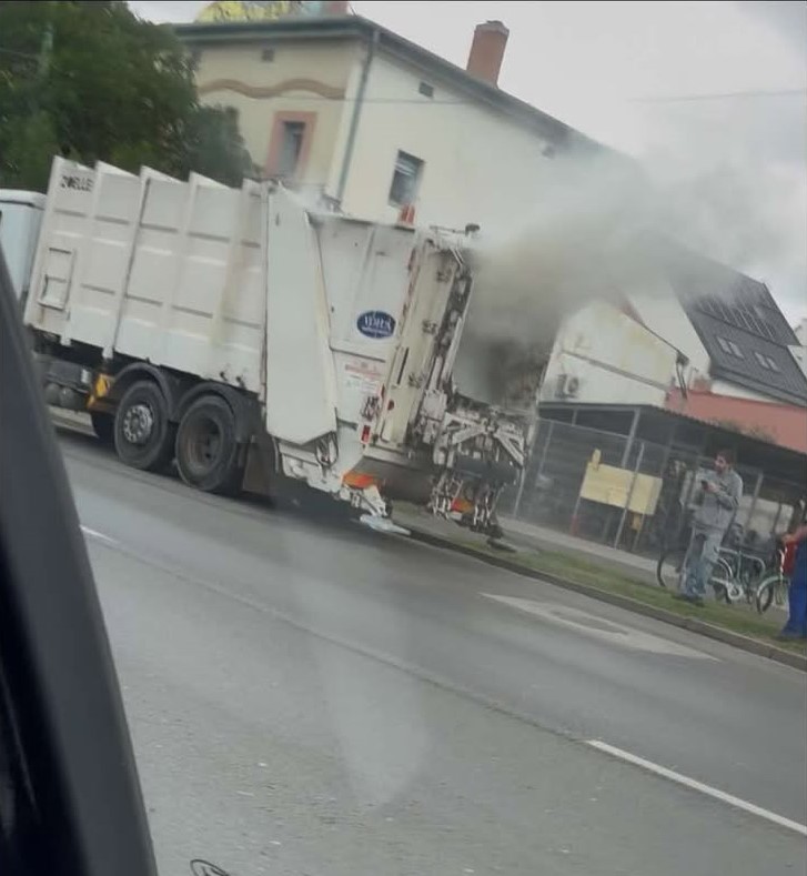 Valószínűleg felgyulladhatott valami a kukásautó hulladékgyűjtő tartályában. Reméljük, nincs nagy baj!
