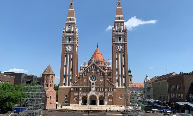 A Szeged Napja Ünnepségsorozat utáni reggel megkezdődtek a Szegedi Szabadtéri Játékok Dóm téri színpadjának előkészületei. Kilenc nap alatt felépült a nézőtér kétharmada, áll a színpad alja, illetve elkészültek a csarnokok, öltözők épületei is. A szervezők idén is fergeteges előadásokkal készülnek a Dóm téren – a programok sorozatát az ikonikus rendező, Szinetár Miklós rendezésével A cigánybáró nyitja, premierrel érkezik A 3 testőr, valamint újra a színpadon lesz az Ezeregy éjszaka, illetve a Rebecca is. Mutatjuk, hogy fest jelenleg a színpad, továbbá az előadások részletes programját is.