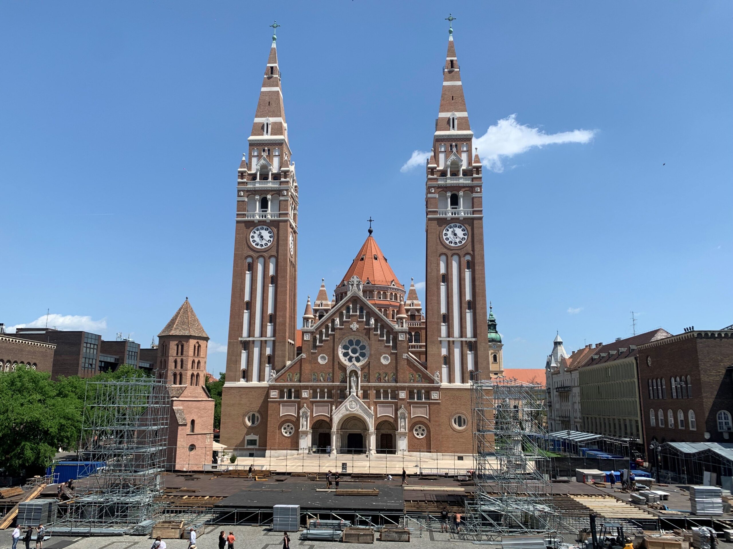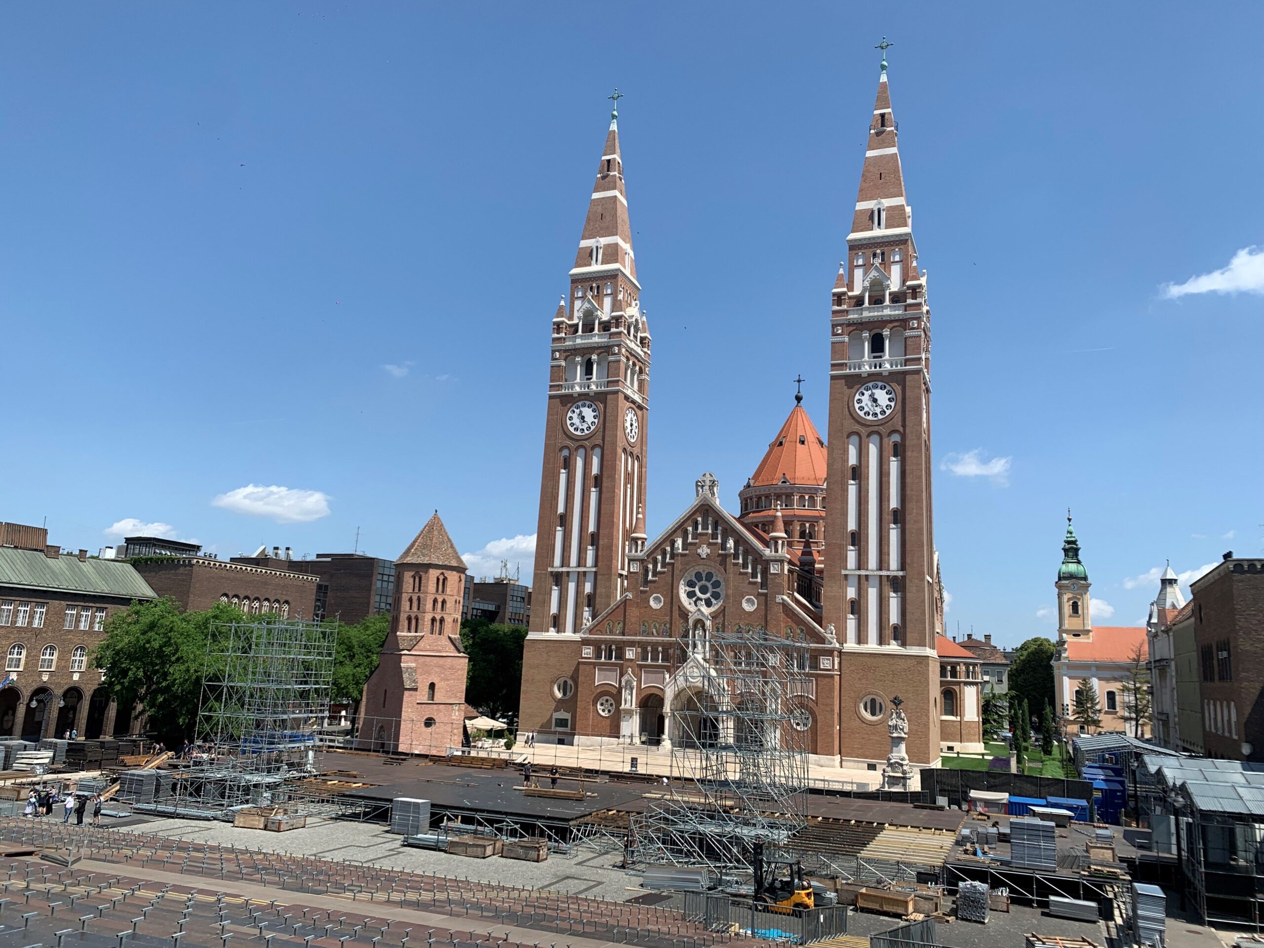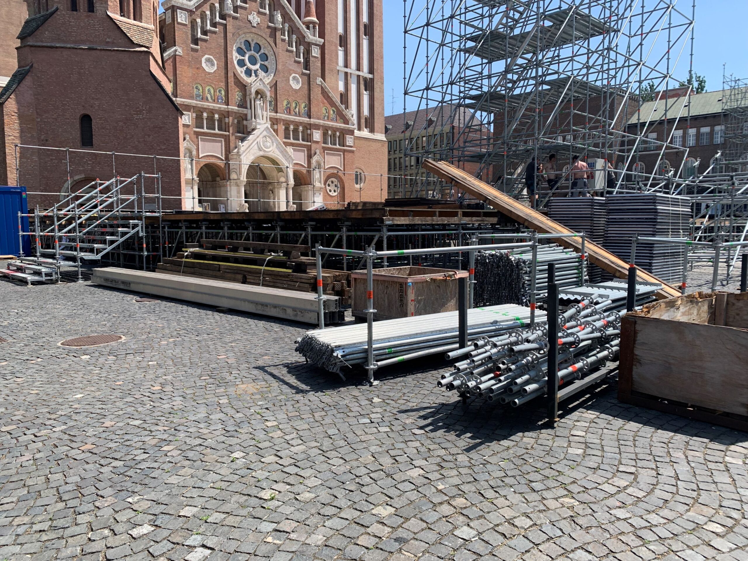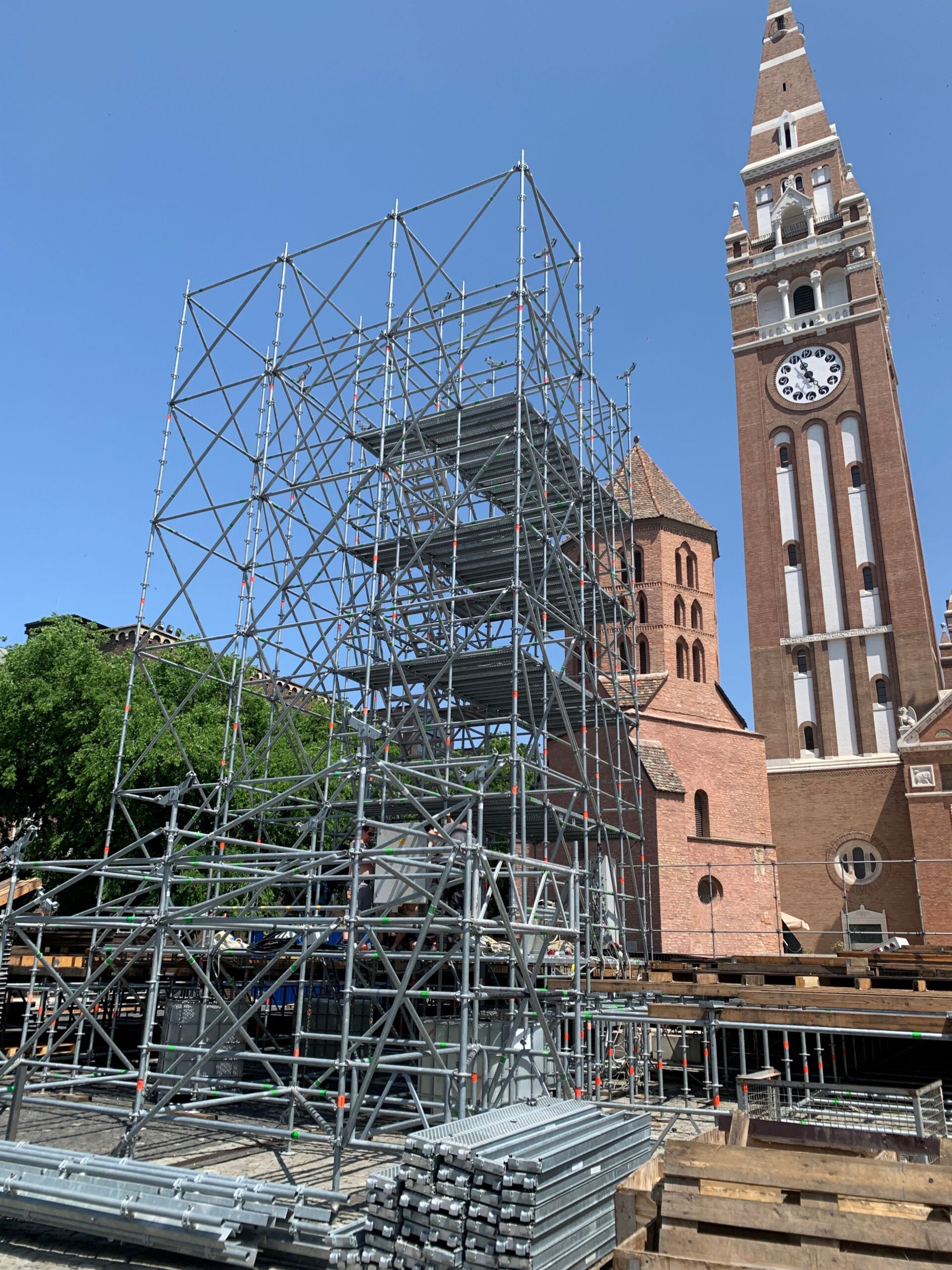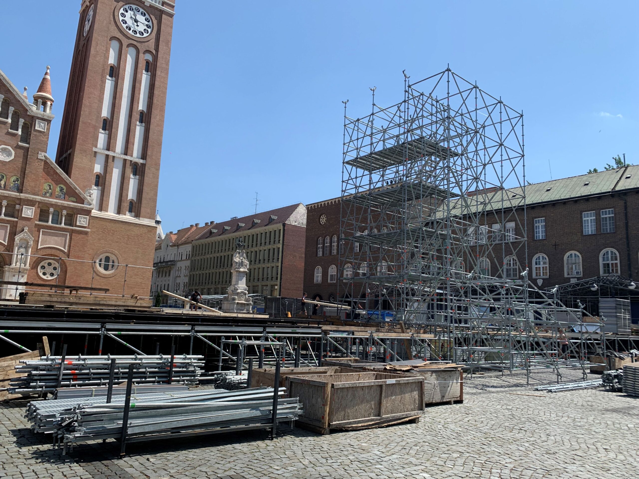 ,,Május 27-én reggel vette át a Dóm teret a Szegedi Nemzeti Színház, ekkor kezdődött el a terület körbekerítése, illetve a raktárakból való kiszállítás. Az azóta eltelt 9 napban már áll a színpad alja, több szerkezet is a helyén, kész a nézőtér kétharmada, illetve felépültek a konténerek, öltözők és raktárak épületei is” – mesélt az előkészületekről Barnák László, a Szegedi Nemzeti Színház főigazgatója. Az építés remek ütemben halad, hamarosan felkerülnek a teljesen új járólapok a nézőtérre, illetve bővül a színpad is, hogy közelebb hozhassák a nézőket a fantasztikus előadásokhoz – tudtuk meg Várkonyi Miklóstól, a Szegedi Szabadtéri Játékok műszaki vezetőjétől. Fontos információ, hogy június 5. és június 11. között a Dóm tér le lesz zárva a kerékpárosok számára!