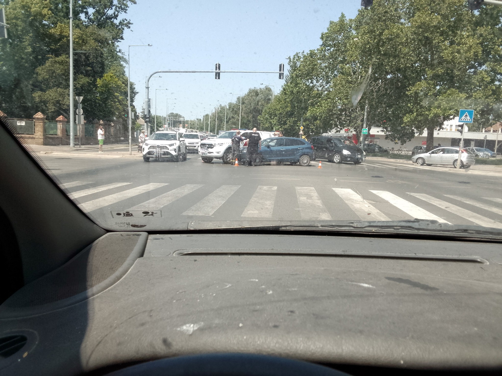 Pénteken délután 14 óra körül baleset történt a Temesvári körút és a Népkert sor kereszteződésénél – jelezte Péter olvasónk. A kapott fotók alapján két autó koccanhatott össze, az egyik érintett pont a katasztrófavédelem járműve.
