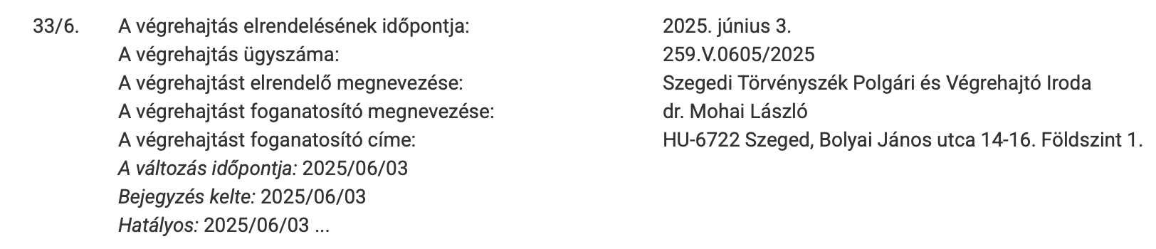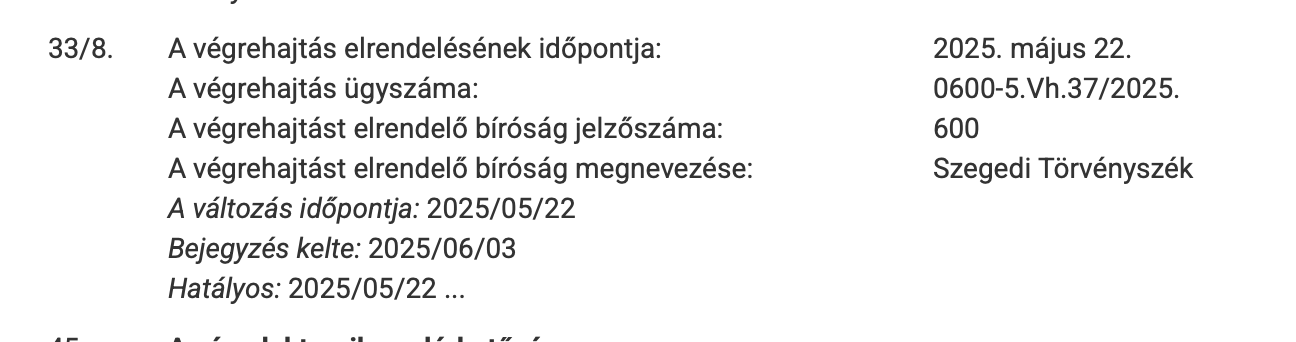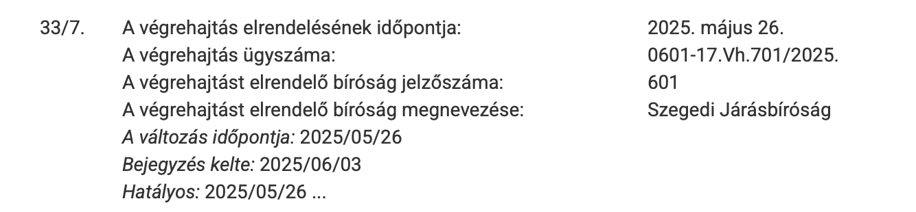 EZ MÁR GOMBÓCBÓL IS SOK! A legújabb információk szerint 2025 áprilisától kezdődően sorra indultak újabb végrehajtási eljárások a Dél-Konstrukt Zrt. ellen – májusban és júniusban újabb négy végrehajtást rendeltek el. Köztük olyanok is vannak, amelyeket a Szegedi Járásbíróság, a Törvényszék, sőt közjegyzői iroda indított. A cég egyre mélyebbre süllyed, miközben az SZTE Fogorvostudományi Kara továbbra is bizonytalan körülmények között várja új otthonát. Az eredetileg 2023-as határidő már 2026-ra tolódott, de egyre kevesebben hisznek benne, hogy valaha is elkészül.