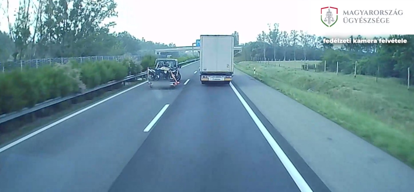 Kiemelték, hogy a vádirat szerint a vádlott 2024. május 25-e hajnalban az autópályán Budapestről Szeged irányába hajtott egy kisbusszal, 5 utast szállítva és utánfutón motorokat húzva. A férfi a belső sávban közlekedve meg akart előzni egy kisteherautót, azonban egy pillanatra nem figyelt az útra, ezért nekiment a szalagkorlátnak.