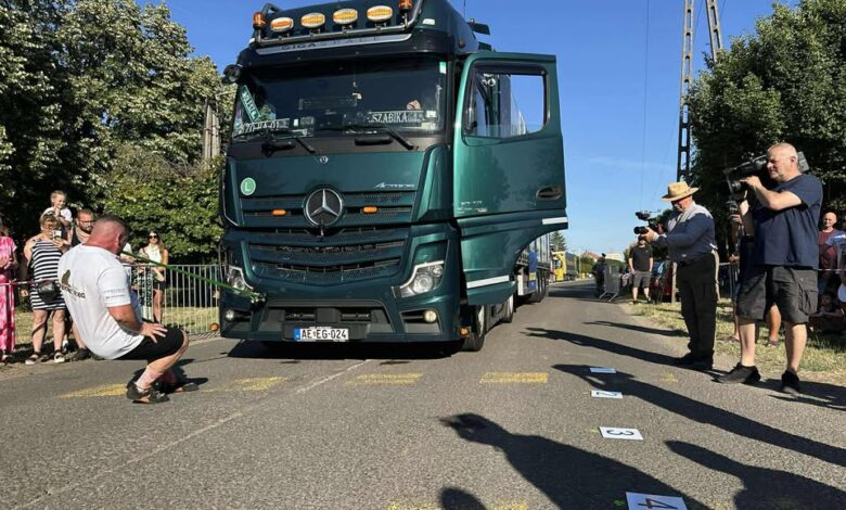 KÖZEL 11 MÉTERRE SIKERÜLT HAT KAMIONT ELHÚZNI A VILÁGREKORDDÖNTÉSHEZ