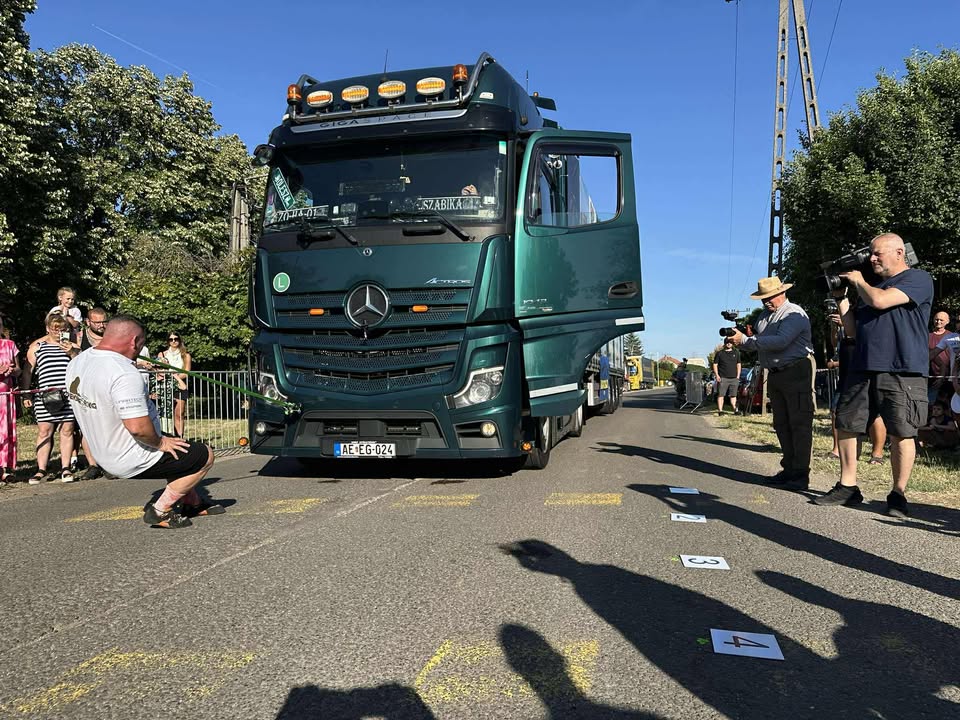 A kettős rekorddöntés ideje június 28-án, szombaton jött el Mezőtúron. ,,A Guinness-rekord kísérlet során csak foggal átadott erőátvitellel lehet húzni az adott járművet. Szerencsére összejött, több mint öt méterre sikerült elhúznom a 18 tonnás kamiont. A Guinness-rekordba az összesített jegyzőkönyv kerül majd be, 2-3 héten belül érkezik majd a visszajelzés, de úgy néz ki, minden kritériumnak megfeleltünk” – emlékezett vissza a rekorddöntésre Zsolt. A korábbi rekordot egy egyiptomi erőember tartotta egy 15 és fél tonnás kamionnal, ezt adta át a múltnak Popey a több mint 18 tonnás jármű elhúzásával. Itt csekkolhatod az elképesztő mutatványt: